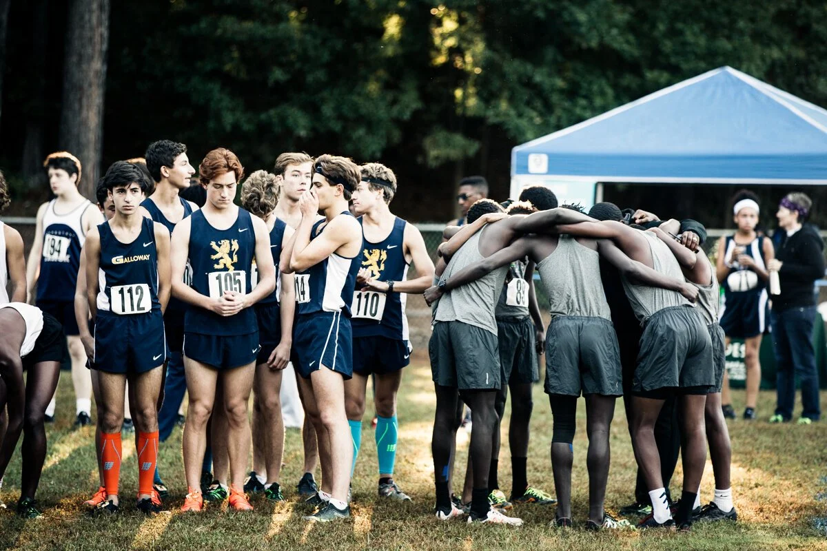 Fifty Nations Deep, Bitter Southerner refugee runners Clarkston cross country team huddle, editorial sports photographer, Growl, Atlanta, GA