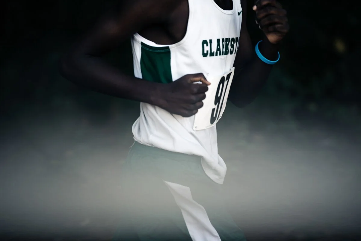 Fifty Nations Deep, Bitter Southerner refugee runners Clarkston cross country solo runner detail, editorial sports photographer, Growl, Atlanta, GA
