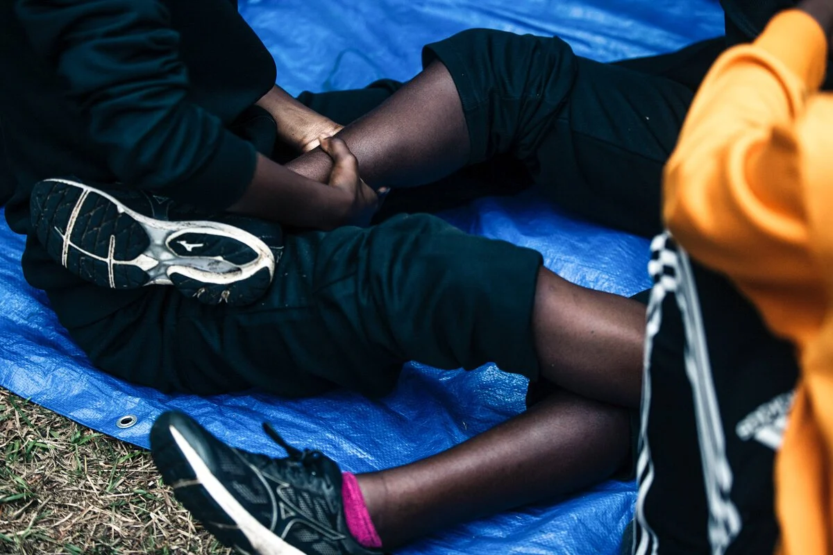 Fifty Nations Deep, Bitter Southerner refugee runners Clarkston cross country post-race cool down, editorial sports photographer, Growl, Atlanta, GA View fullsize